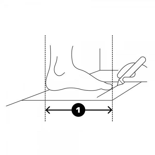 - Then use a pen to draw a line just in front of your big toe. Repeat for both feet and take the longer distance to determine your size.